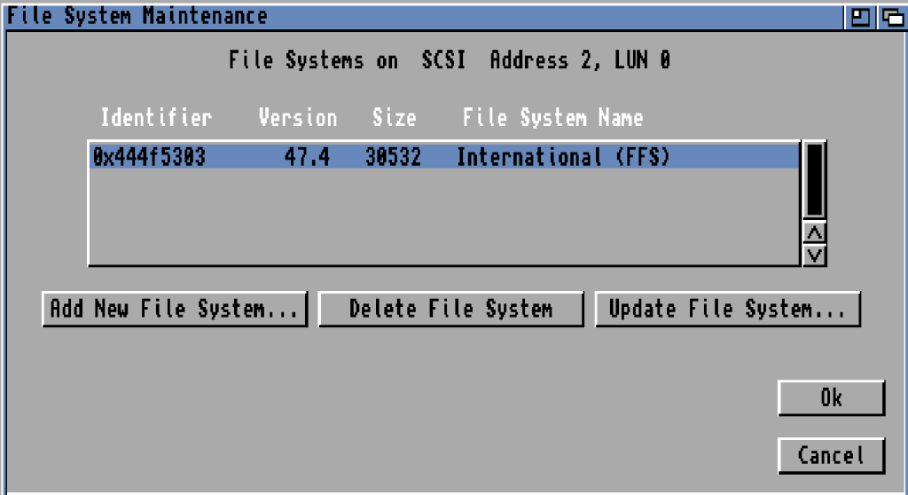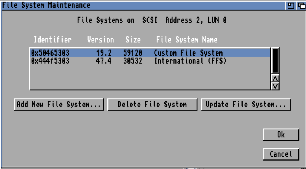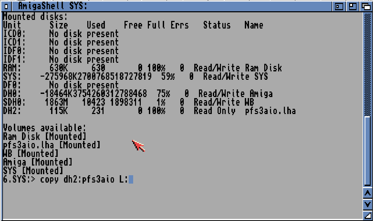 There are updated filesystems for the Amiga. one popular is “PFS” so lets add that.