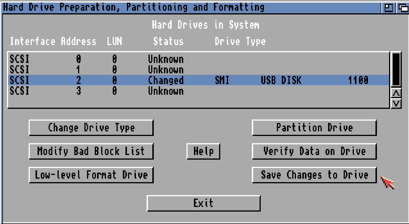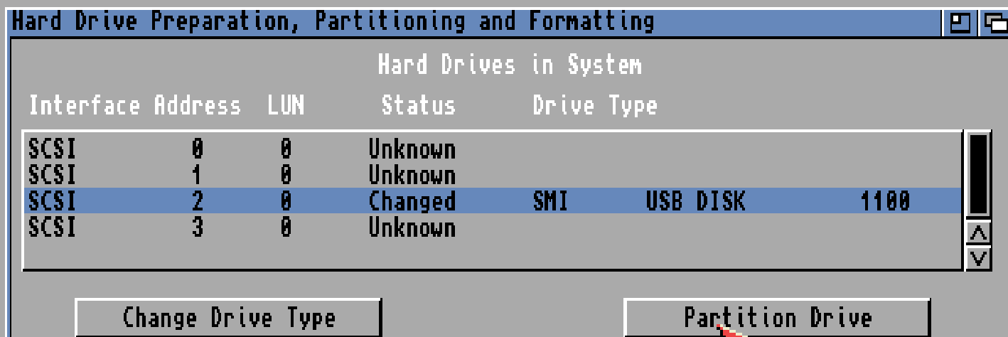 if you like me have a empty disk you will see a [UNK] disk if the size you have. if it is an Amiga formatted disk it will say [RDB] both are equally ok. just select it. and then “Add hard drive”