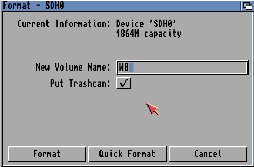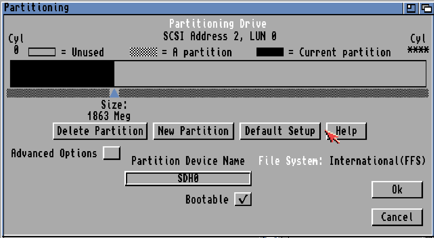 HOWEVER! if you want to use large disks you will need to use a modern patched scsi.device for your machine. this is outside the scope for this guide! OR use 3.1.4 or newer.
