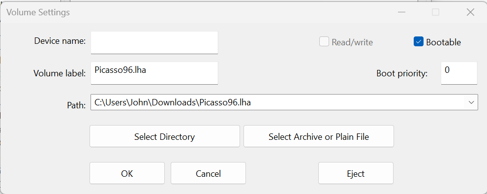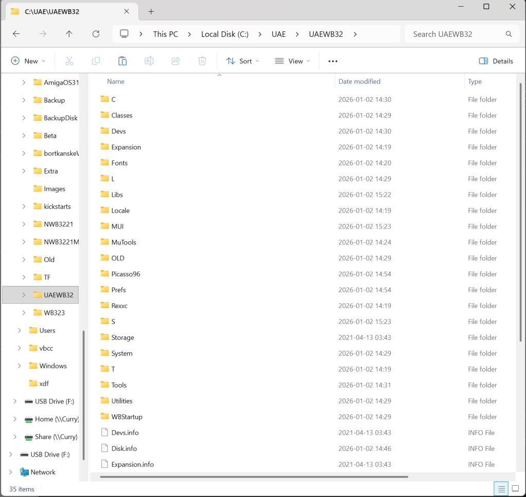 You can add PC Drives at startup. this will make it possible for you to access your PCs drives from the Amiga. I however do not do this. I copy the stuff I need to my “Amiga” dir instead. this is totally up to you!.