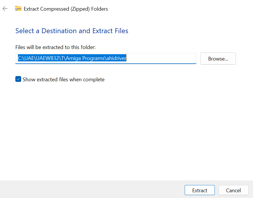 Create a dir to keep your Amigainstall at. I did it in C:\UAE\UAEWB32. you can select whatever you think works.