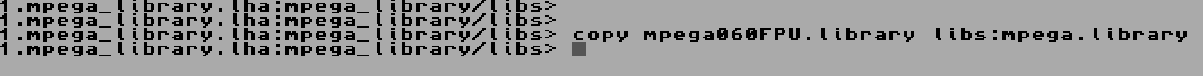 now copy the wanted file. I will use mpega060FPU.library you can use one that fits your config: