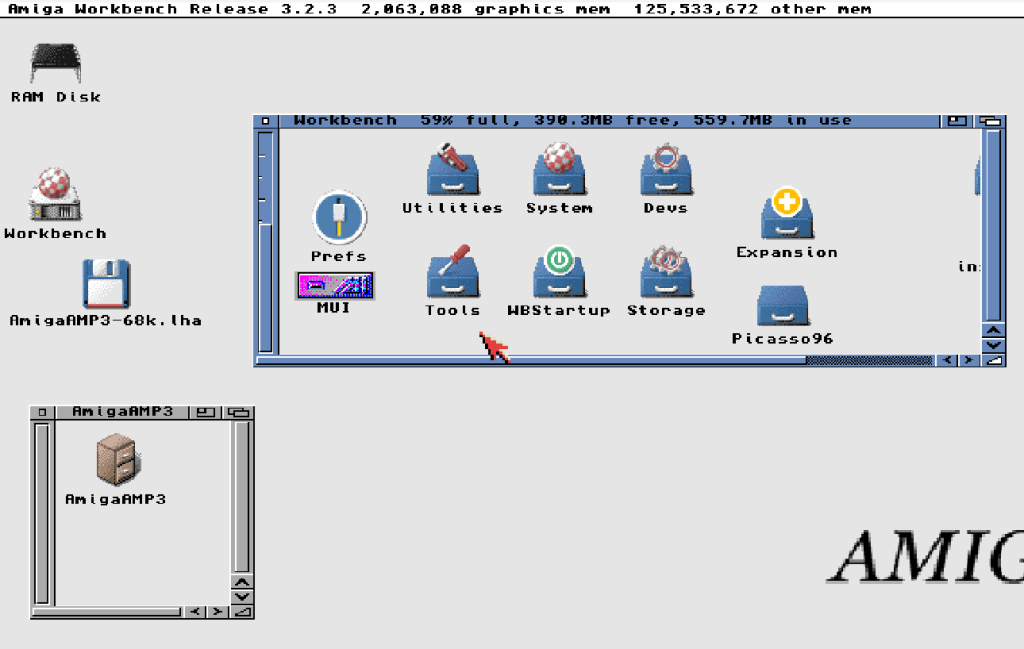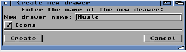 As AmigaAMP does not have a install script. I click on a empty space in “Workbench” and hold down right mousebutton go to the menu and choose Window -> New Drawer