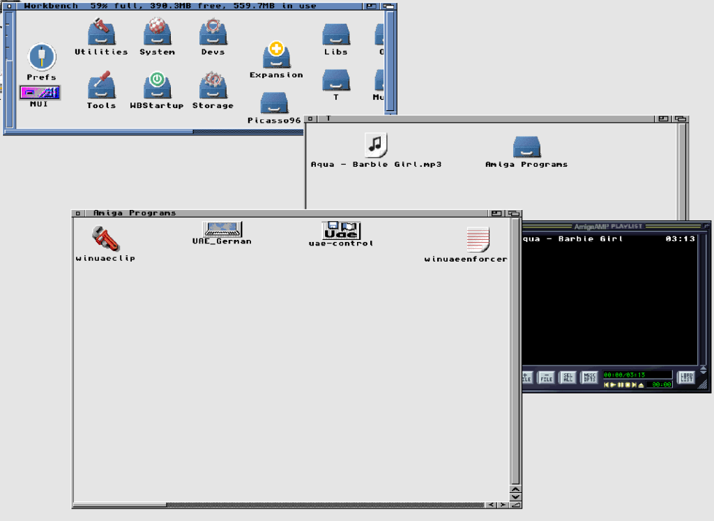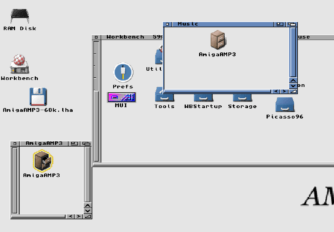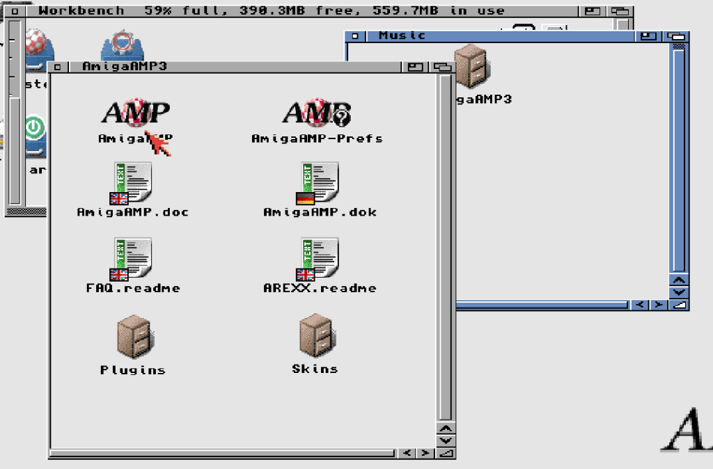 and now close all windows: workbench -> Music -> AmigaAMP and run AmigaAMP.