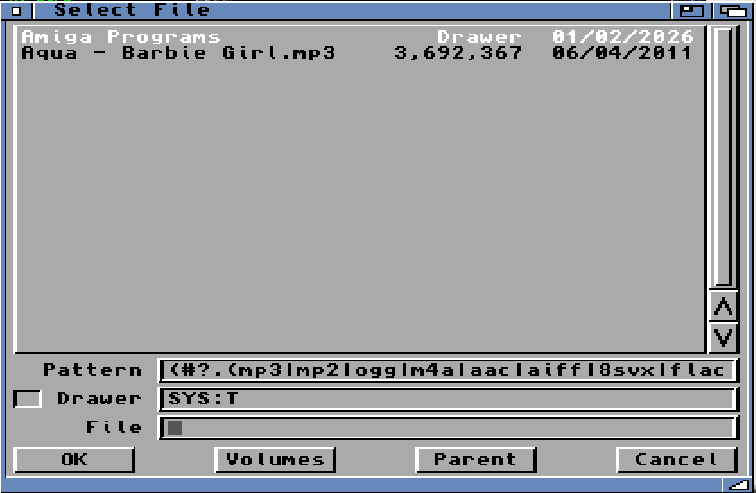 ALSO. copy a mp3 file of your liking from your PC (well all have that old napster folder? ๐ ) to your Amiga machine T Dir.
