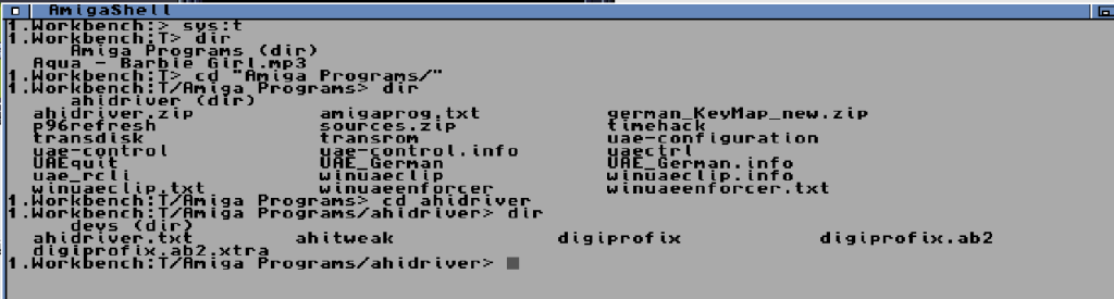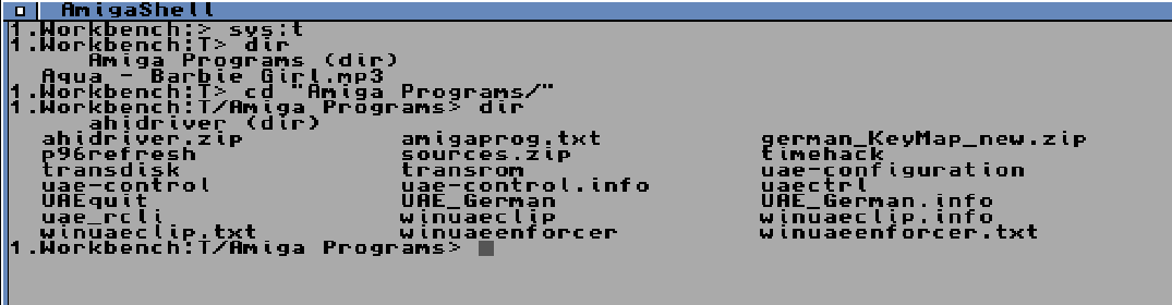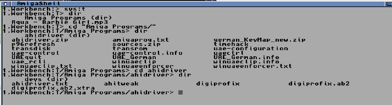cd “Amiga Programs” in 3.2 you only need to do cd am<tabkey>
