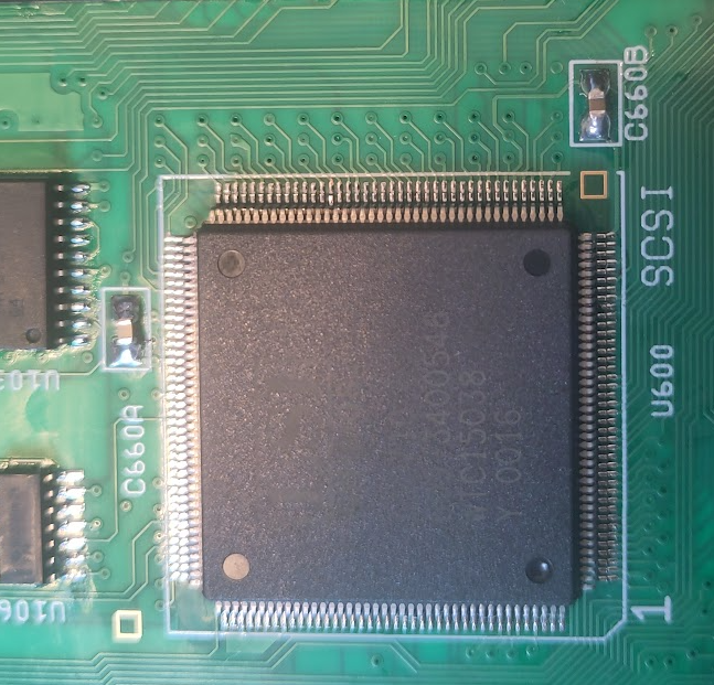 and SCSI Chip, U600 (MIGHT not be needed at this part. but I did have some weird issues that soldering in this seems to solve)