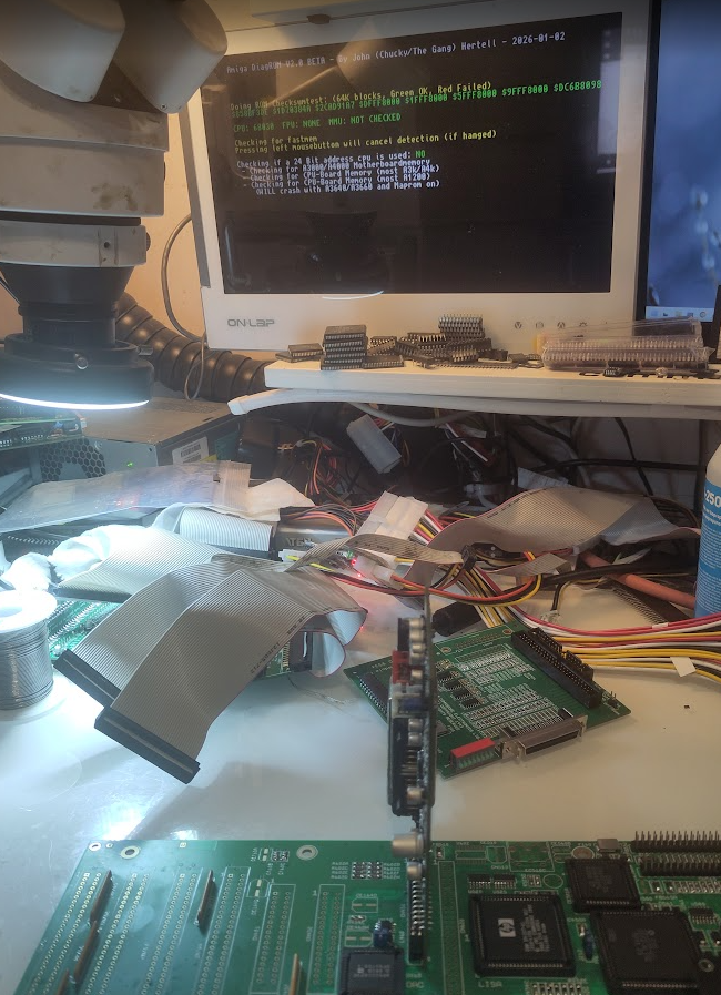 Anyway with all 2MB Chipmem soldered in and working. Time to get something on the screen.